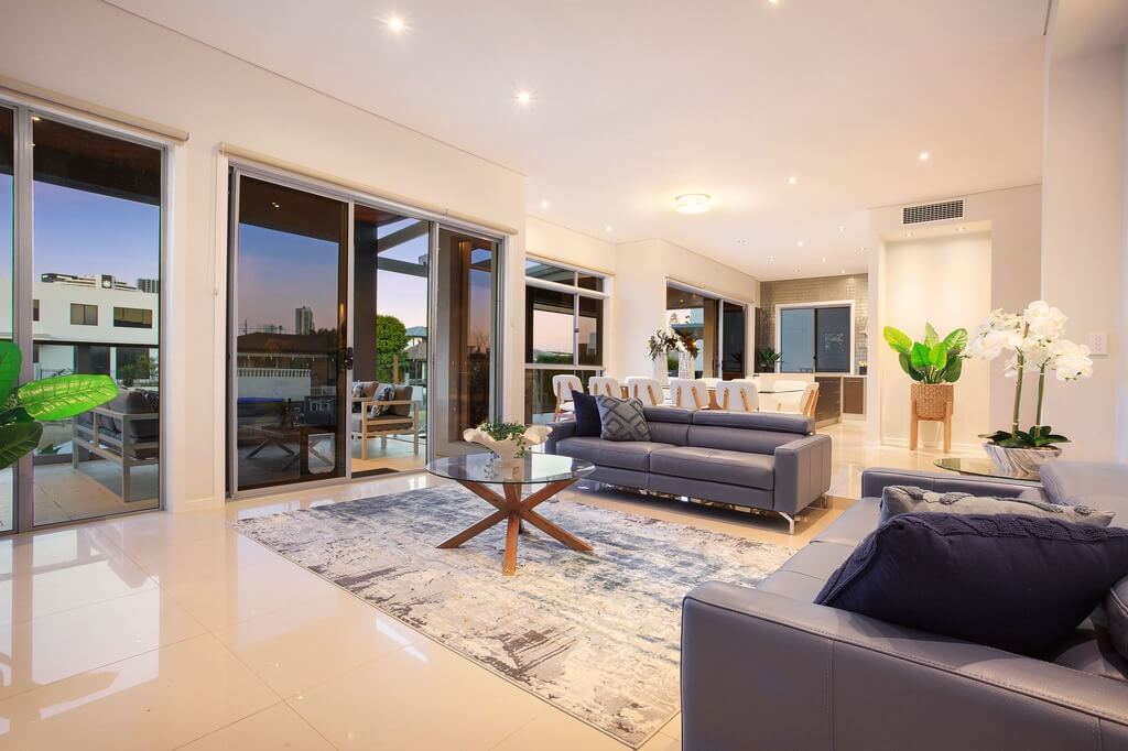Waterfront home showcasing a contemporary coastal design, with spacious, elegant interiors and high ceilings. Soaking up vast water views, natural sunlight and peaceful surroundings. Multiple entertainment spaces all set against a backdrop of the scenic Gold Coast skyline. This large 8 bedroom home has all that you need for an ideal family holiday!