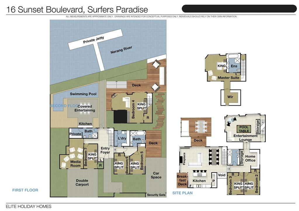 With seven spacious bedrooms and five bathrooms the floor plan is ideal to give everyone space and privacy. There are four distinctly separate living and entertaining areas making this an ideal home for holidays or corporate retreats.